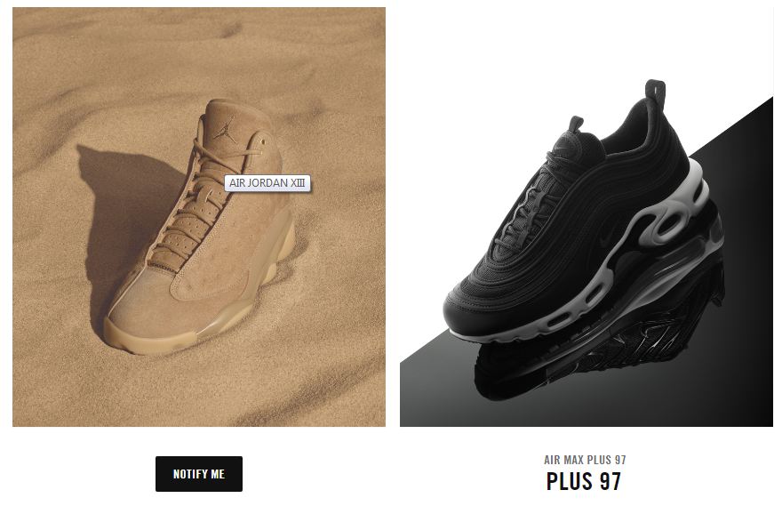 When you hover over a shoe you like the look of, the name of the product turns into a “Notify Me” button. This gives you the option to download Nike’s app. The whole aim is to build excitement ahead of a lucrative date in the retail calendar.