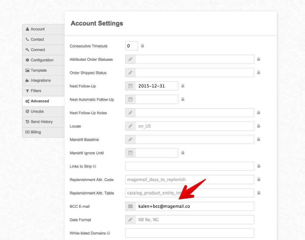 If you put something in there, it will override the BCC settings under Settings > Advanced: