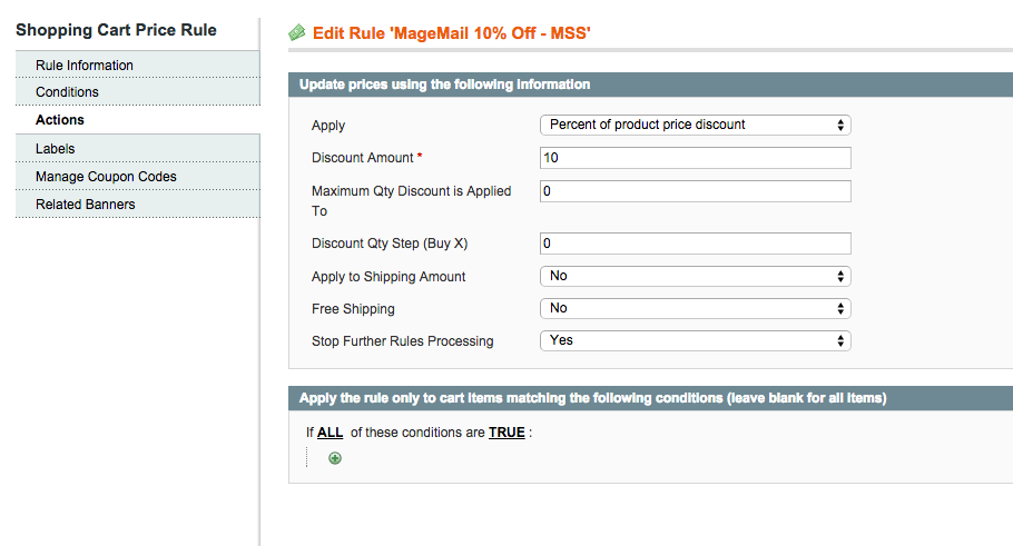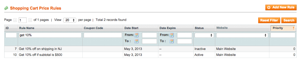 Then, you can pop into your Magento backend and under Promotions > Shopping Cart Price Rules look that one up: