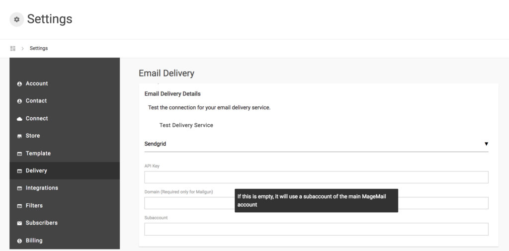 We currently support Sendgrid, Mailgun, and Mandrill if you’d like to use your own ESP account. The reason that we do not support other ESPs at this time is either due to a lack of market demand or because the service does not support detailed email tracking and analytics via webhooks. The latter – detailed analytics – is one of the key benefits you gain from MageMail, so this has become a blocker for use of some ESPs, including Magento’s native service and Amazon SES.
