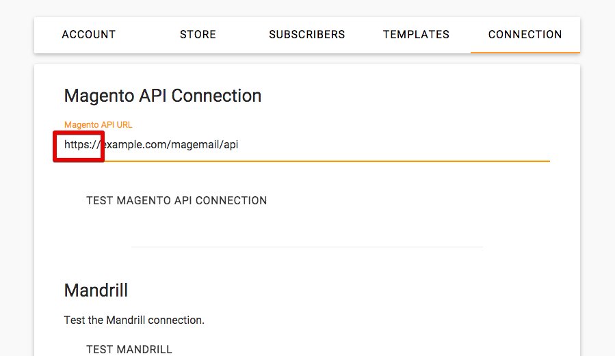 If you get this error message, it means that there may be an issue with your SSL certificate, which is preventing the MageMail service from accessing the API in your Magento store over https.