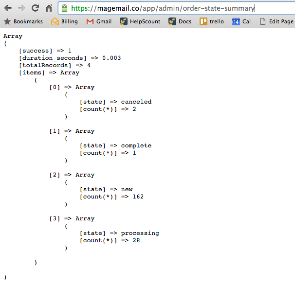 It shows a breakdown of your order count in the last 60 days by state. As you can see with this example below, it looks like only one of their orders is actually complete and the majority of them are still in the new state.