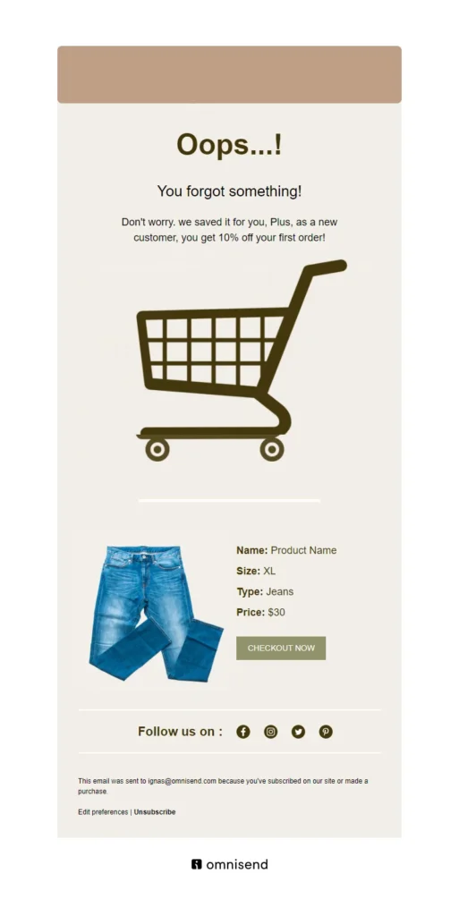 Abandoned cart emails are a common behavior triggered email marketers use. When a customer adds an item to their online shopping cart but exits before completing the purchase, an email is automatically sent.